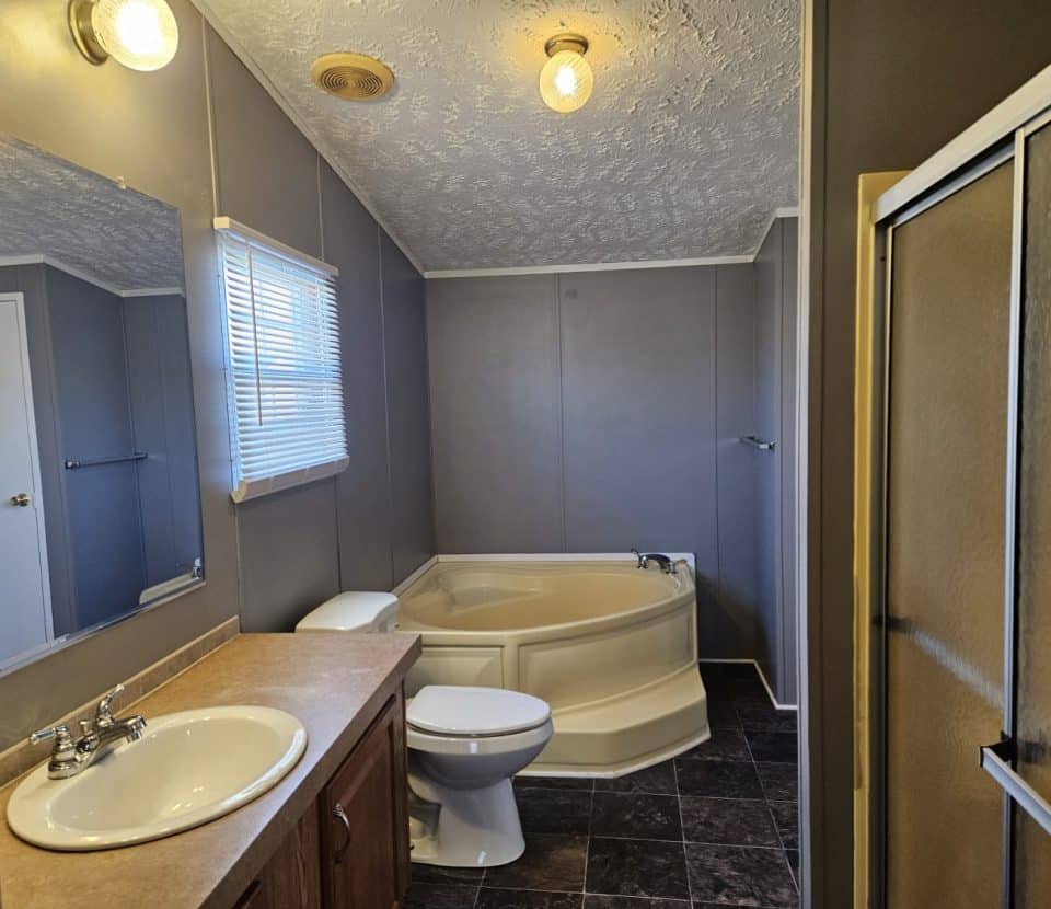 The primary bathroom has a large garden tub and stand alone shower.
