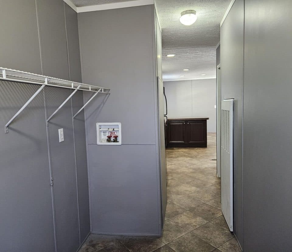 There is a separate laundry area with enough room to move around in.